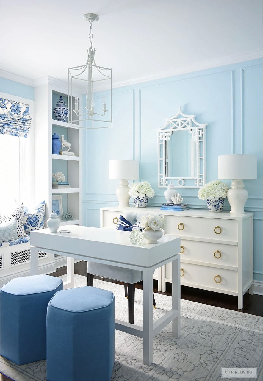 Discover CitrineLiving’s elegant home office reveal featuring timeless blue and white chinoiserie style. See the full makeover with chic furniture, gorgeous fabrics, and inspiring details for a sophisticated yet personal workspace.