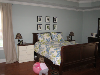 I love the look of photos above the bed, so a few months ago I bought several frames from IKEA. And last night I finally got around to hanging them. It’s just one more thing in my quest to make my bedroom a cozy retreat for my hubby and me. Slowly this new house if feeling more and more like a home!